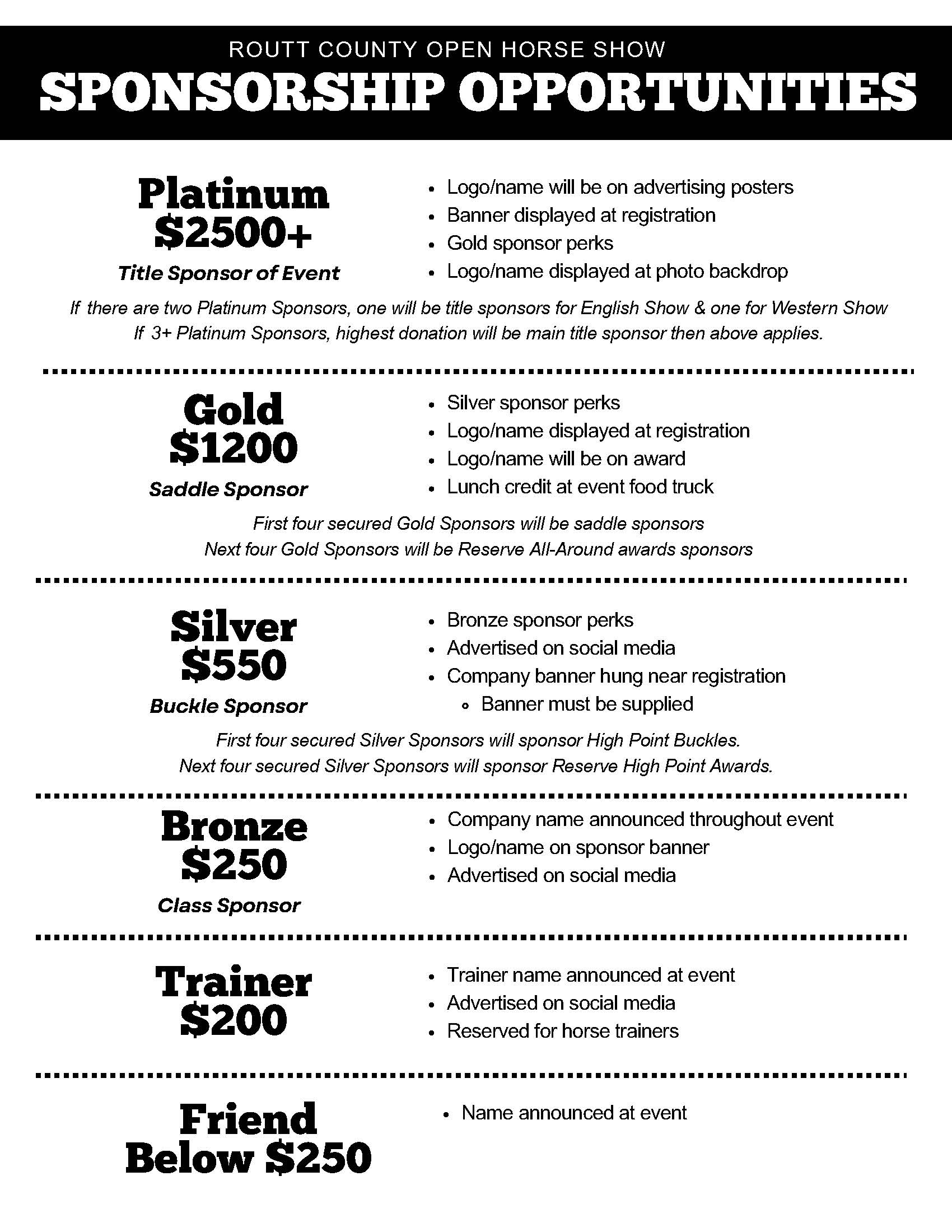Please review our sponsorship packet. We would love to discuss how we can tailor a sponsorship package just for you.